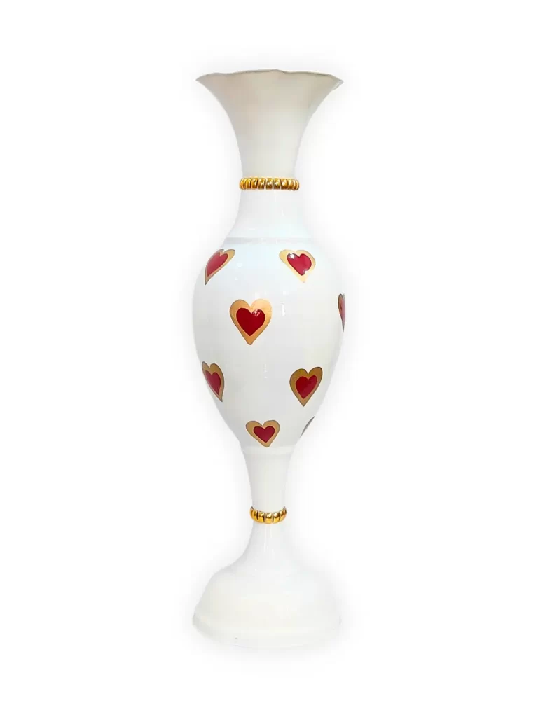 Youngsera Handmade 24-Inch Flower Vase with Red Heart Design, Perfect for Home Decoration and Adding a Touch of Glamour and Romance to Your Living Space – White