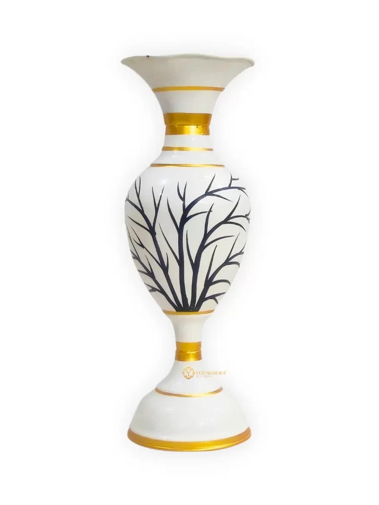 Exquisite 23-Inch Handcrafted Golden Flower Vase by Youngsera – Elegant Floral Design – White