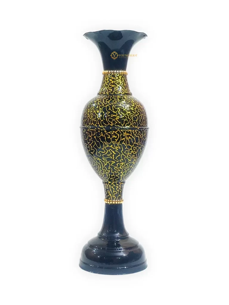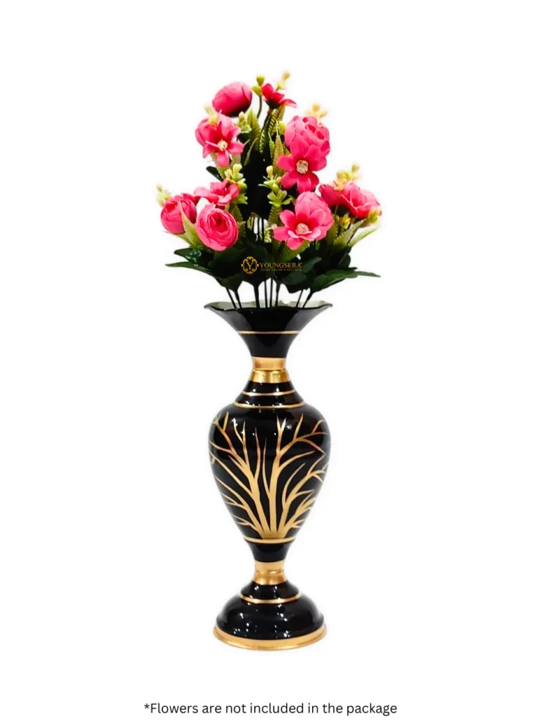 Exquisite 23-Inch Handcrafted Golden Flower Vase by Youngsera – Elegant Floral Design – Black