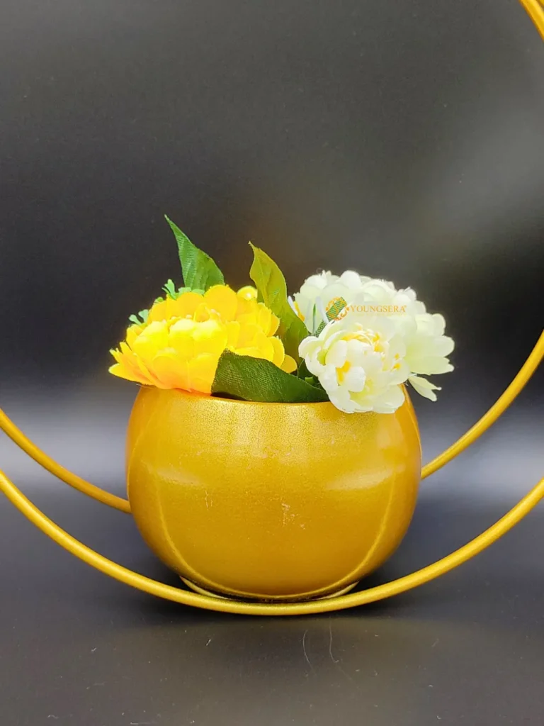 Youngsera Premium Moon Metal Flower Vase Diwali Gift Items for Home Decoration Tabletop, Side Table, Living Room, Home Office Decoration, Home Decorative Items, 9 Inches Height- Pack Of 2 – Yellow