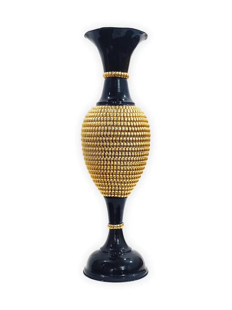 Stunning Handmade Matki Flower Vase with Golden Color Patta (Leaf) Design | Elegant 22-Inch Vase for Home Decor | Perfect for Wedding Centerpieces, Anniversary Gifts, and Birthday Presents – Black
