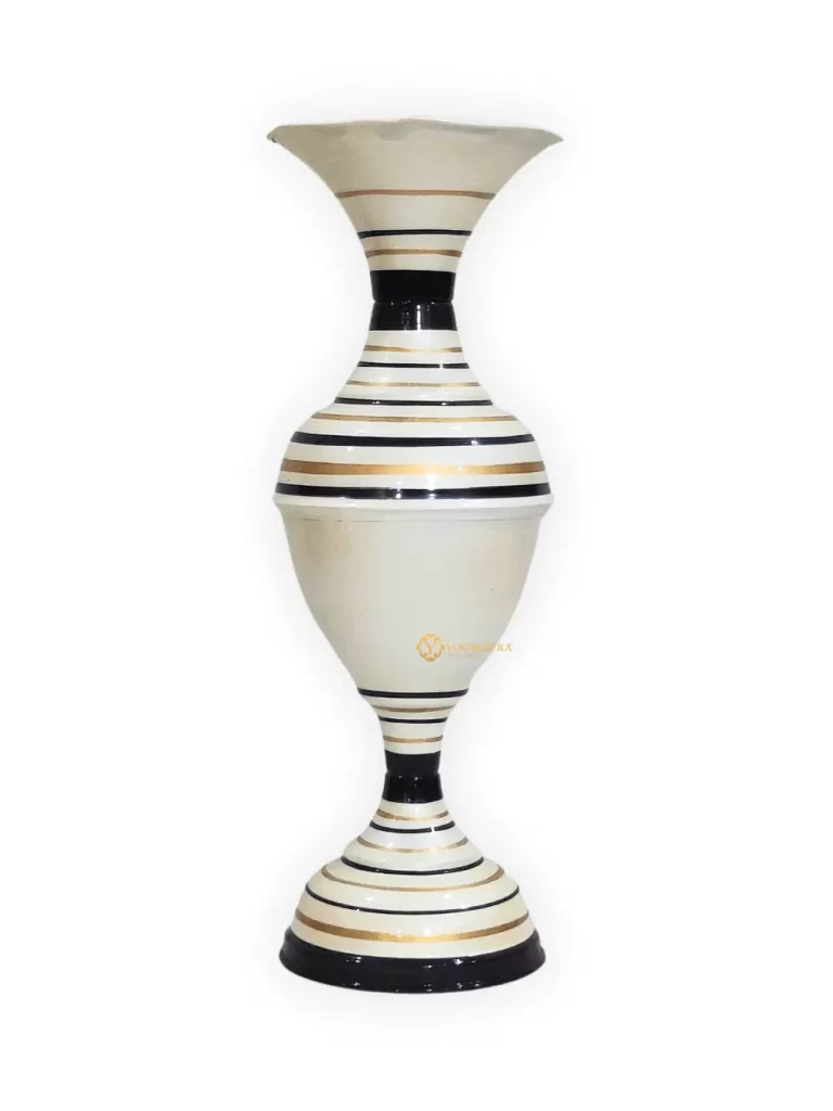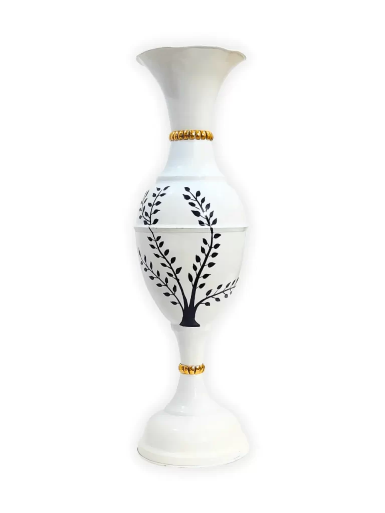 Stunning Handmade Matki Flower Vase with Golden Color Patta (Leaf) Design | Elegant 22-Inch Vase for Home Decor | Perfect for Wedding Centerpieces, Anniversary Gifts, and Birthday Presents – White
