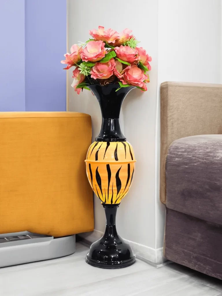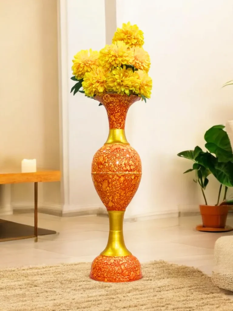Youngsera Metal Flower Vase | Marble Design Flower Vase | Perfect for Home Decor, Living Room, Corner Space| 36-Inch Height | Pack Of 1 | Orange