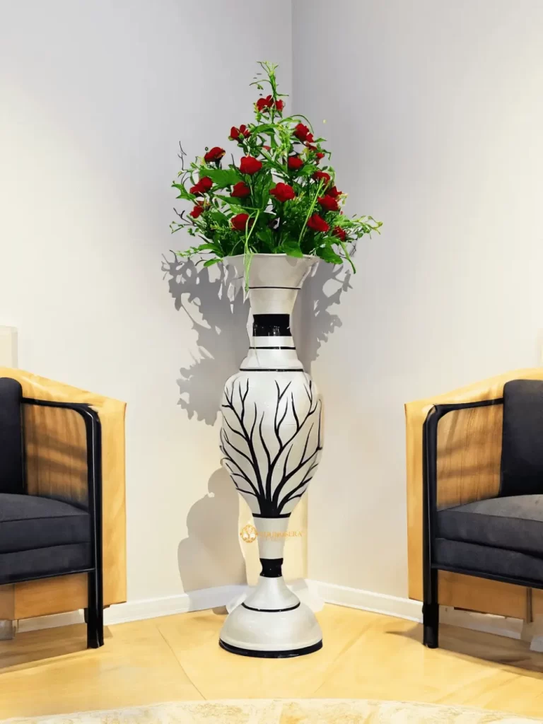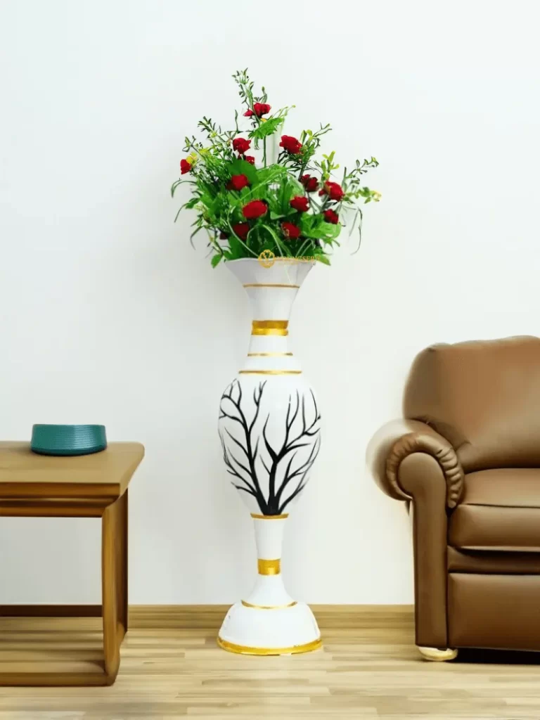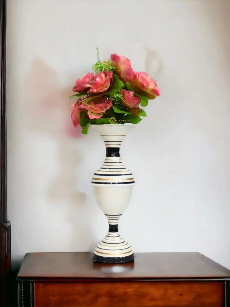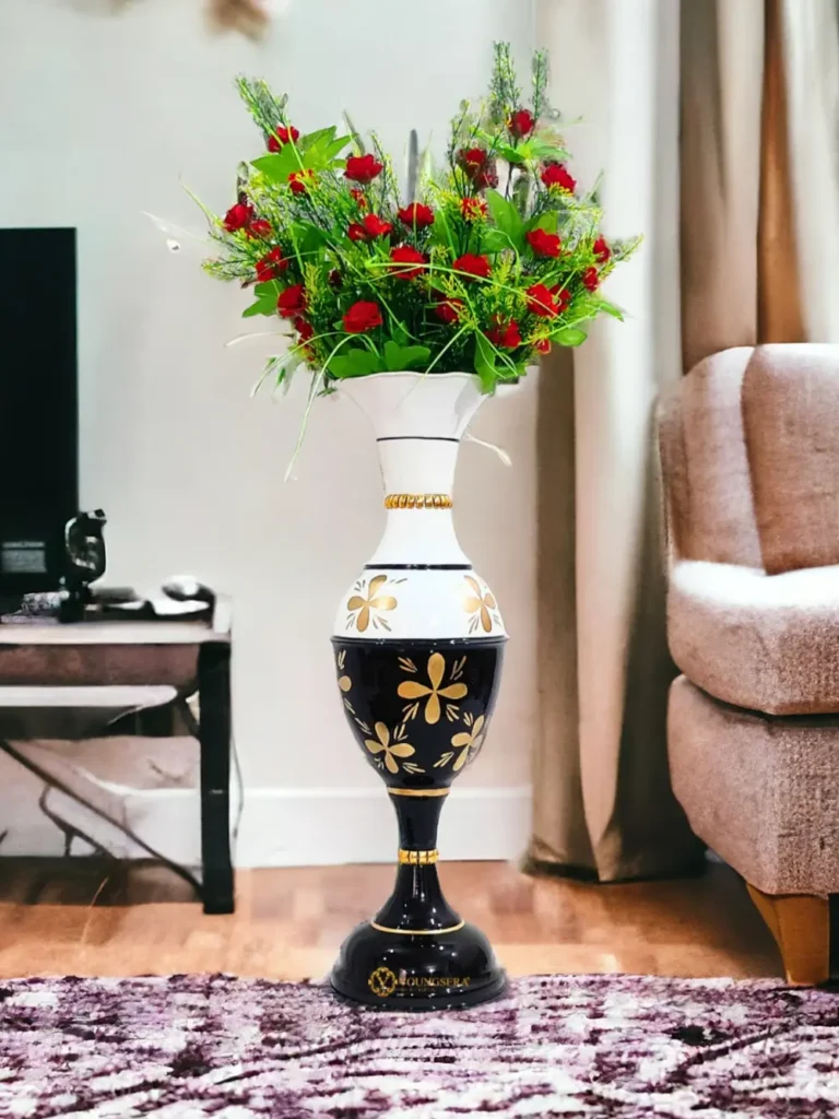 Stunning Handmade Flower Vase with Golden Color Flower Design | Elegant 24-Inch Vase for Home Decor | Half White and Half Black Vase | Perfect for Wedding Centerpieces, Anniversary Gifts, and Birthday Presents