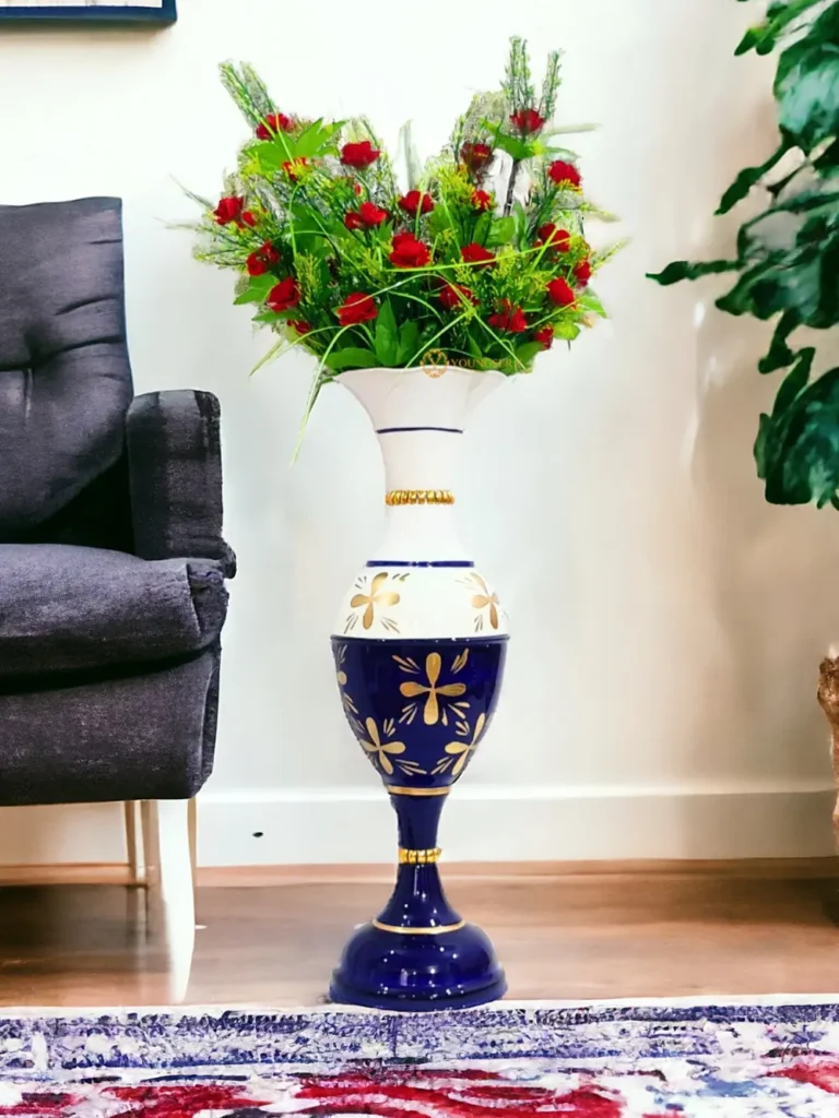 Exquisite 23-Inch Handcrafted Golden Flower Vase by Youngsera – Elegant Floral Design – Blue