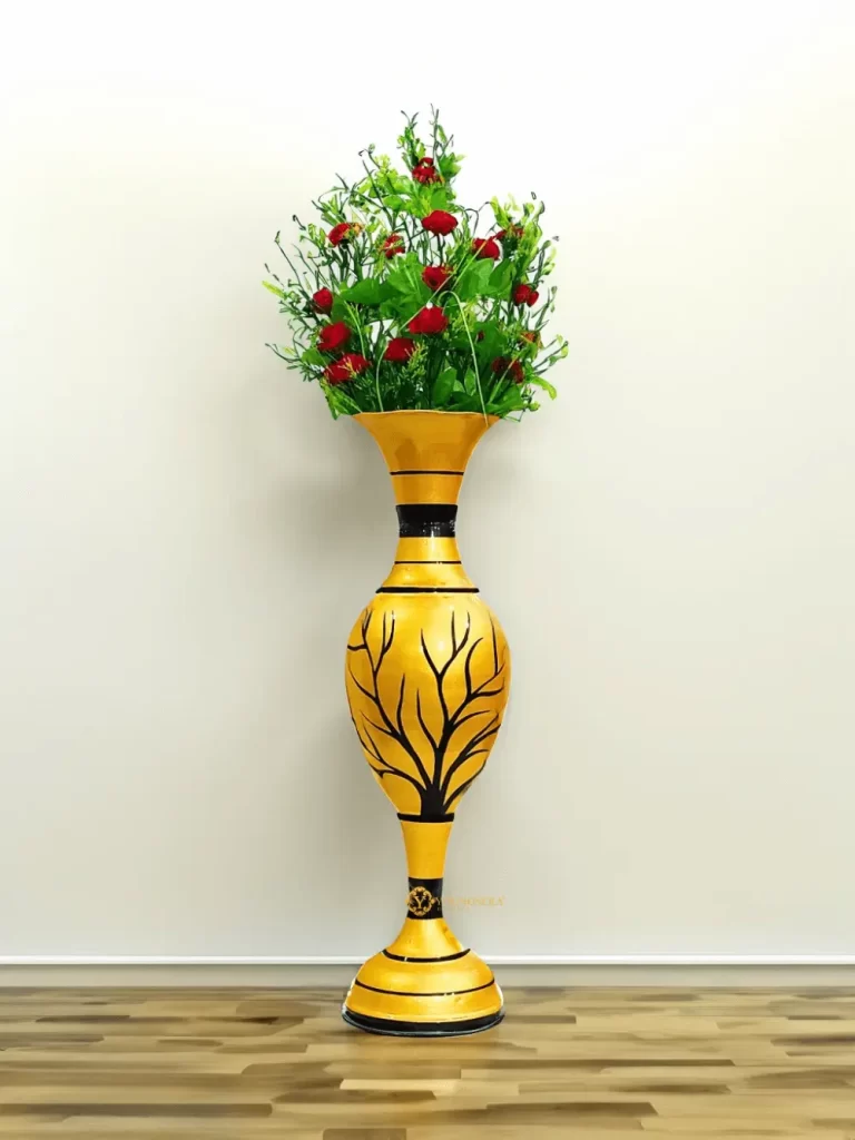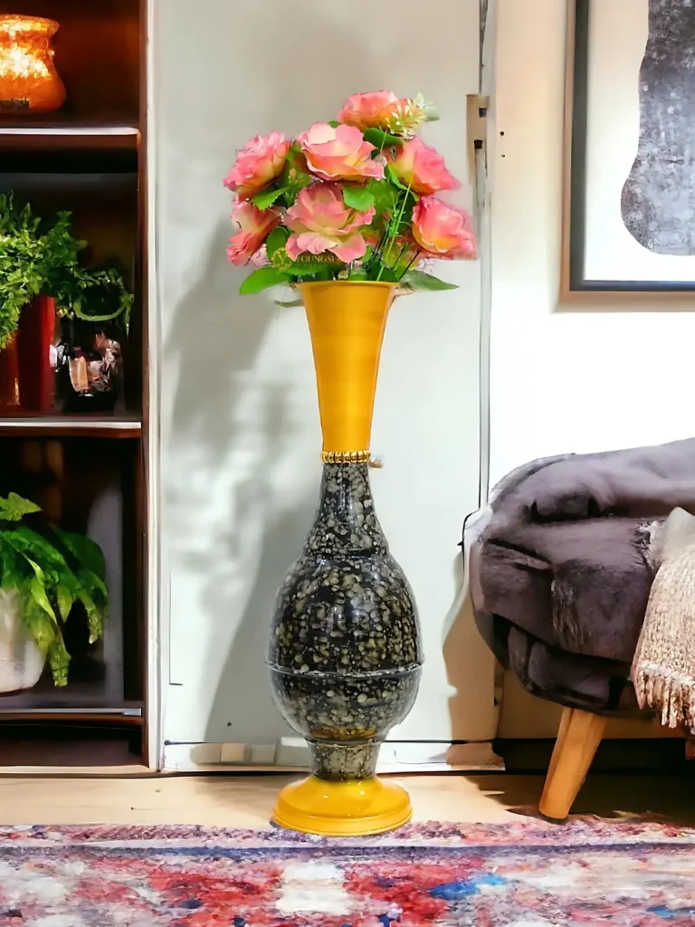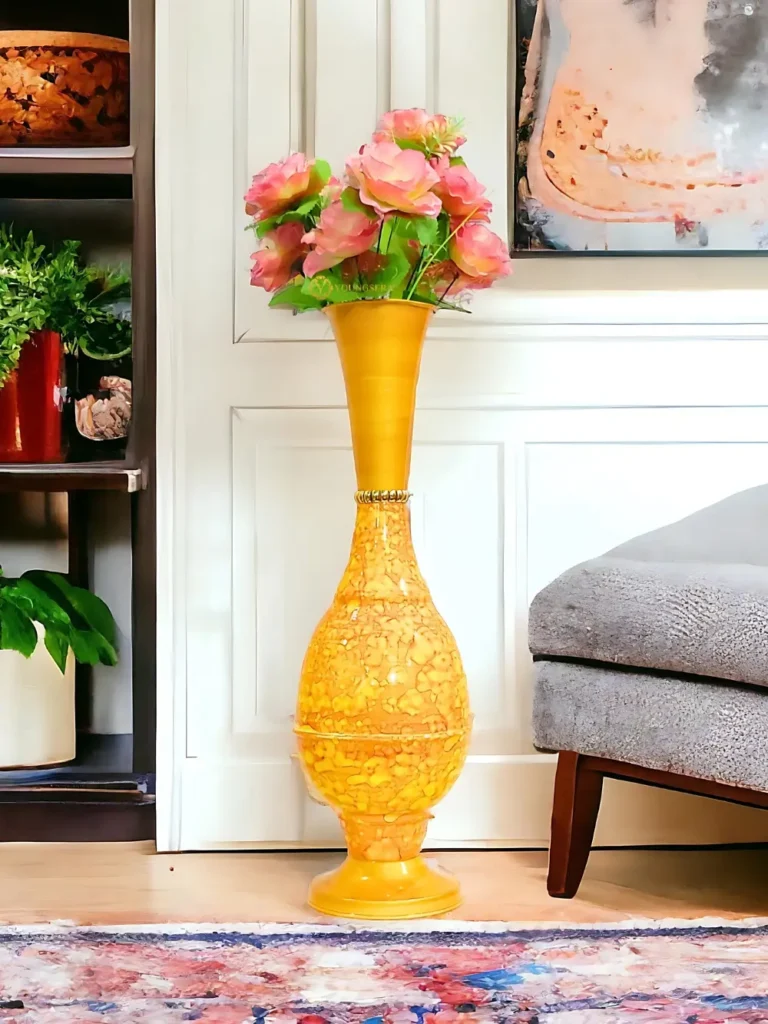 Youngsera 23-Inch Handmade Marble Design Surahi Flower Vase Perfect For Home Decor – Yellow