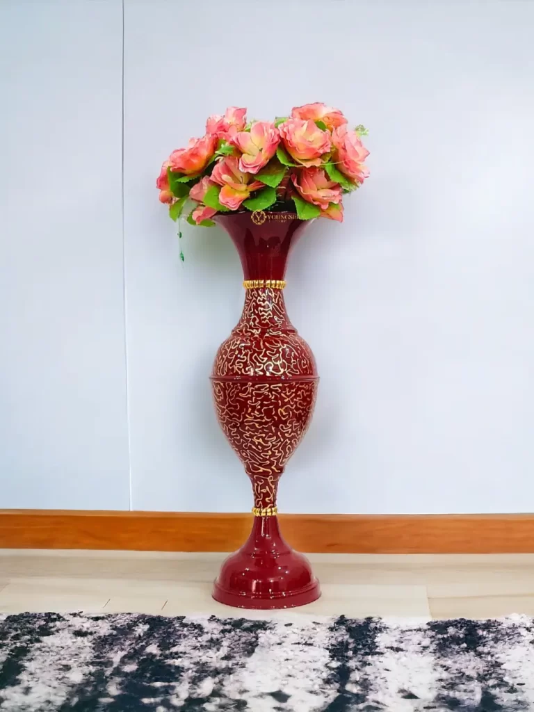 Fancy Flower Vase for Home Decoration | Big Size Flower Vase for Living Room Corner | 2 Feet Height Metal Vase | Fill Empty Space in Your Home | Cherry | Pack of 1