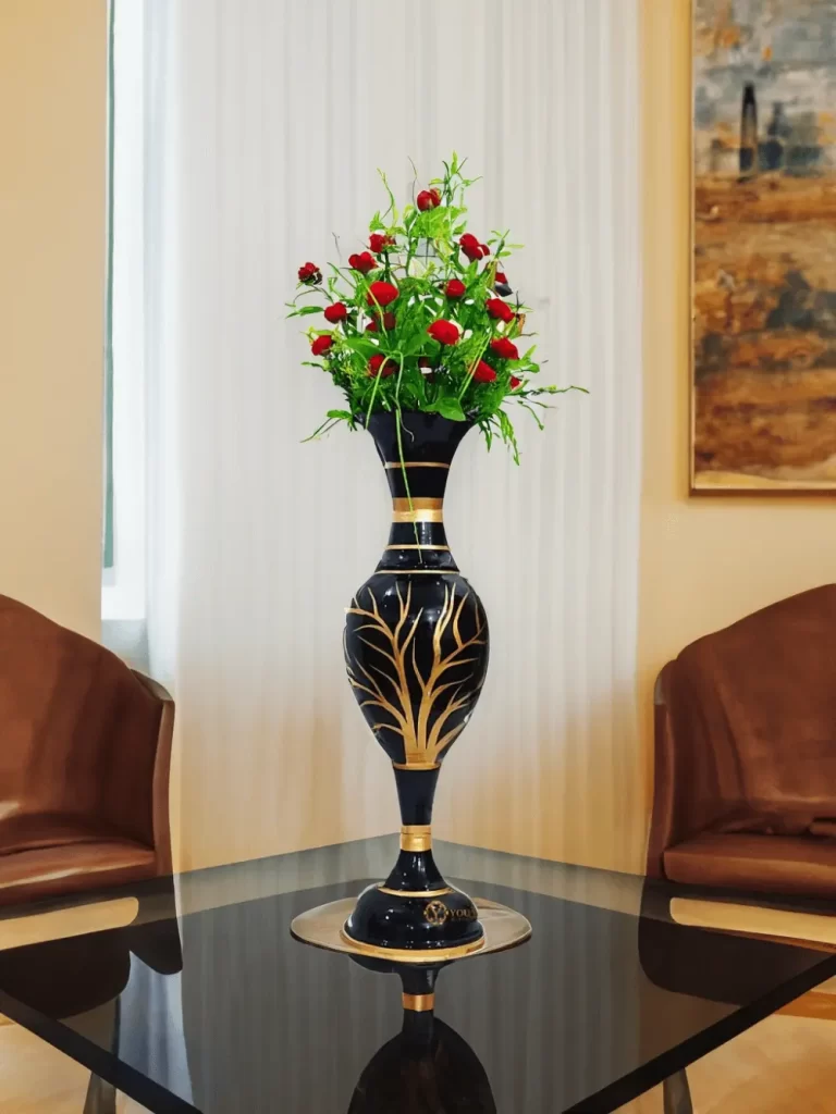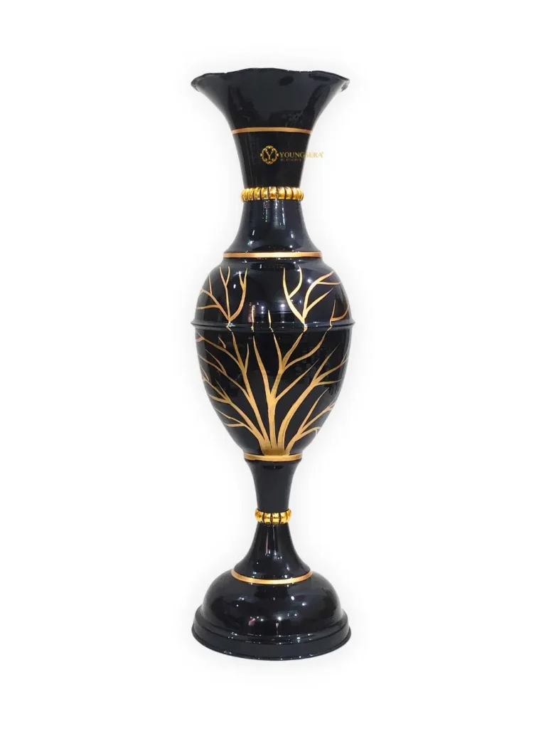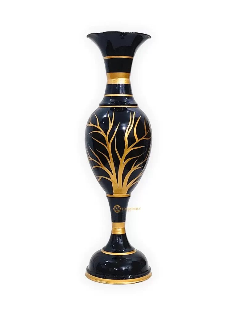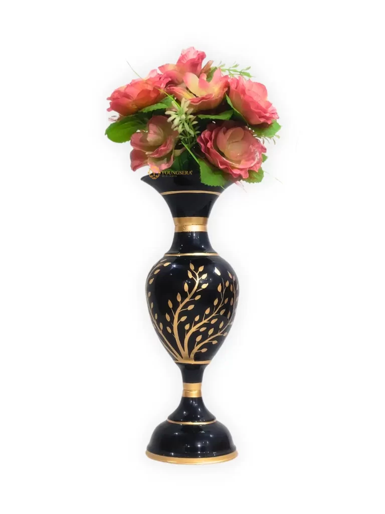 Exquisite 23-Inch Handcrafted Golden Flower Vase by Youngsera – Elegant Floral Design – Black