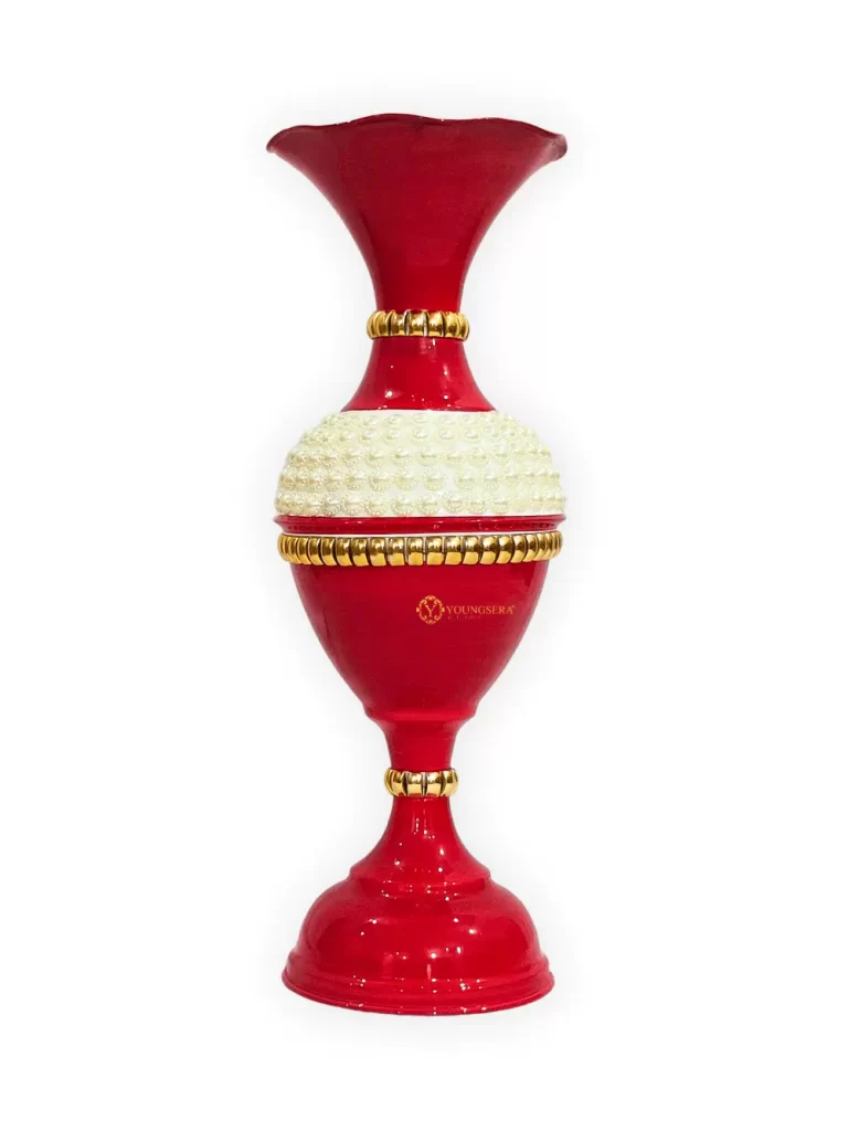 Youngsera 36-Inch Flower Vase: Exquisite Vase with White Pearls for Luxurious Home Decor – Red