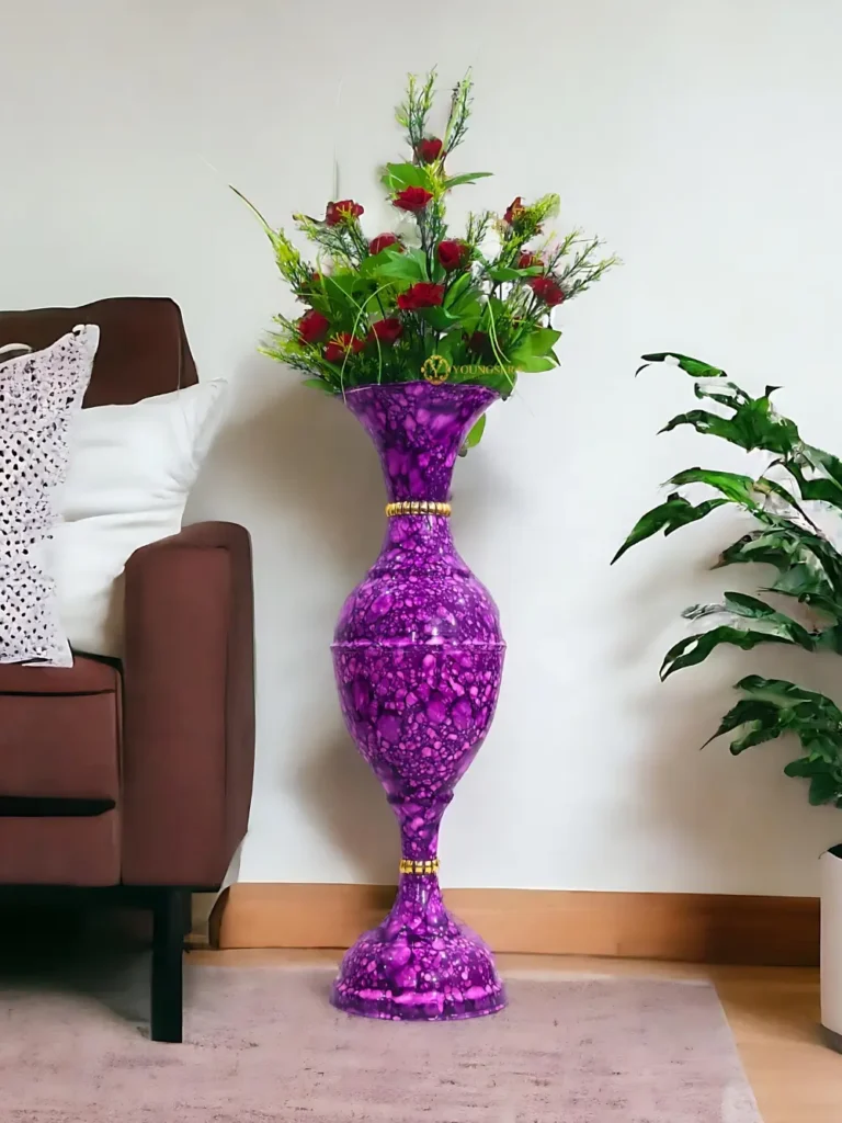 Youngsera – Timeless Beauty: Handcrafted Marble Flower Vase | 23 Inch Height | Perfect for Home decor, Living room, Dining table – Purple