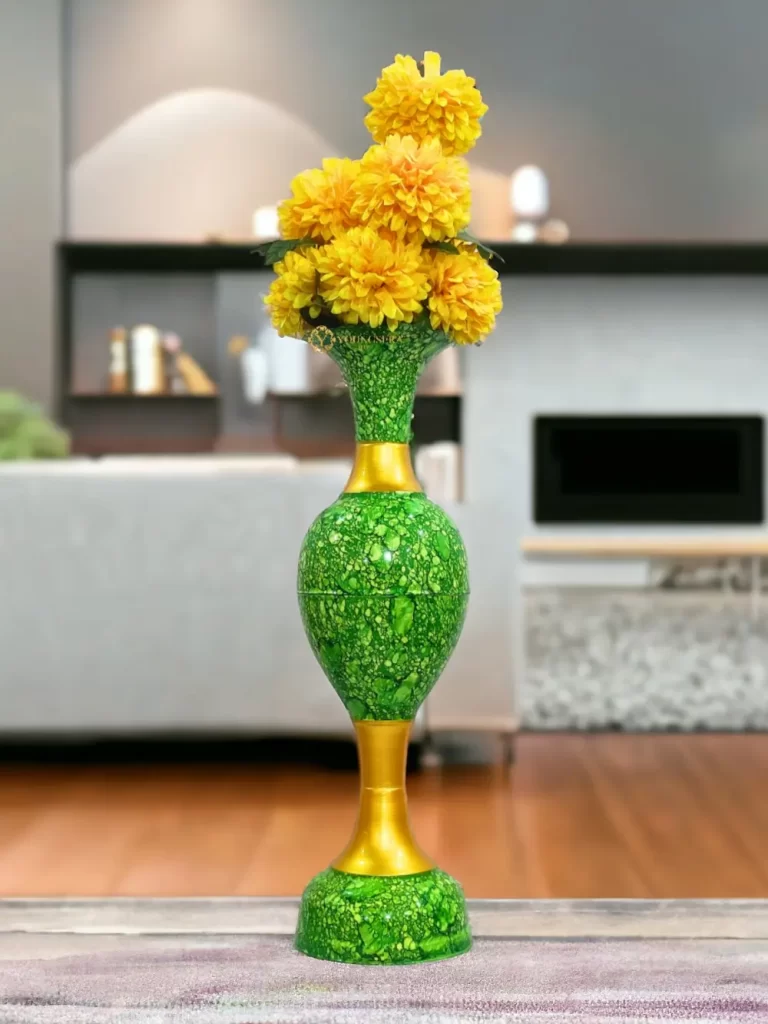 Exquisite 23-Inch Handcrafted Golden Flower Vase by Youngsera – Elegant Floral Design – Green