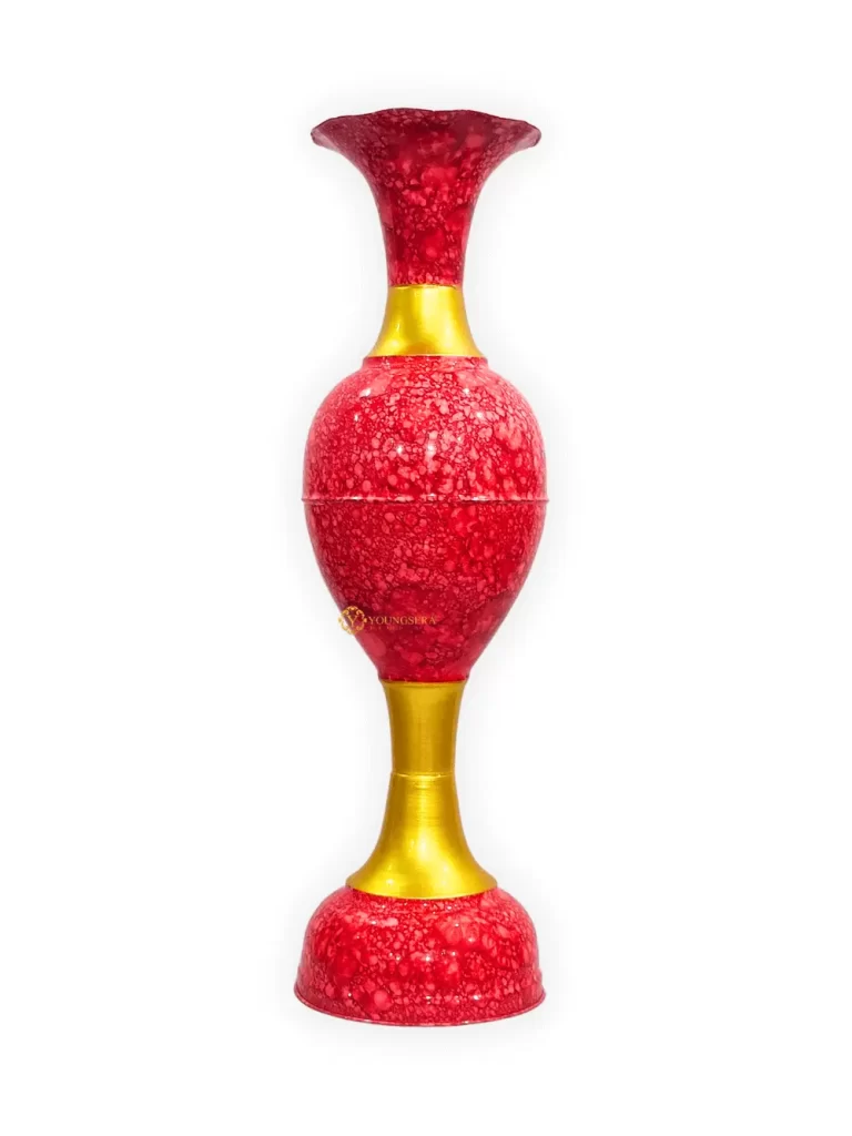 Youngsera Metal Flower Vase | Marble Design Flower Vase | Perfect for Home Decor, Living Room, Corner Space| 36-Inch Height | Pack Of 1 | Red