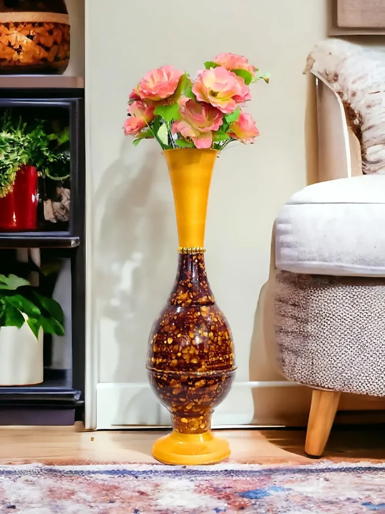Youngsera 23-Inch Handmade Marble Design Surahi Flower Vase Perfect For Home Decor – Golden Brown