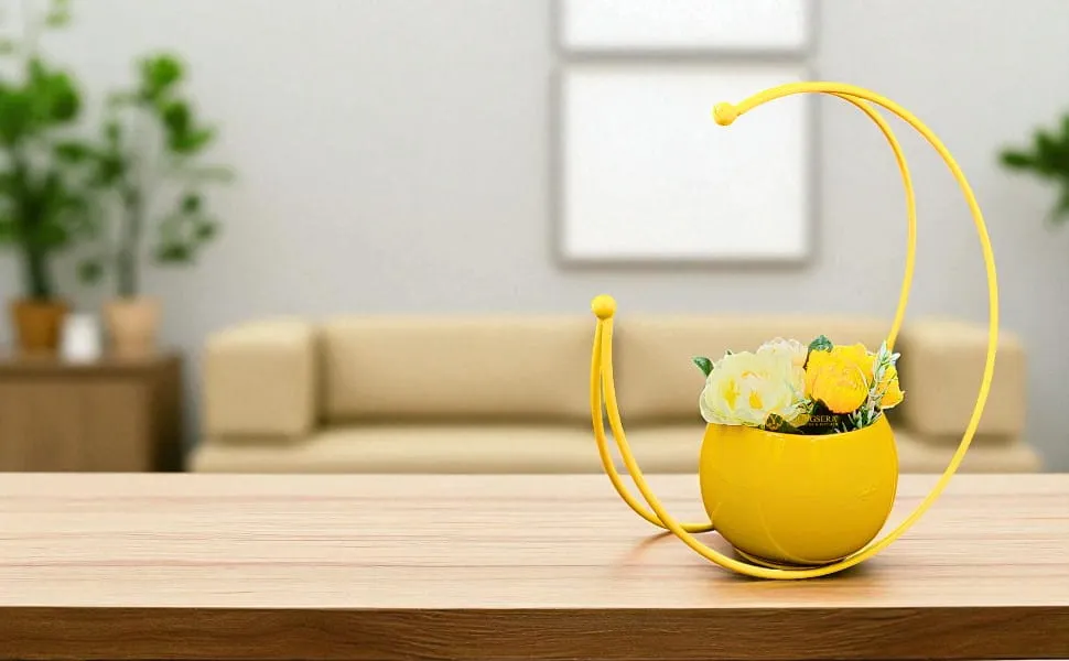 Youngsera Marble Design Flower Vase For Artificial Flowers Home Décor Office Living Room Bedroom Table Decoration Item 9 Inch Vase | Pack Of 2 | Yellow